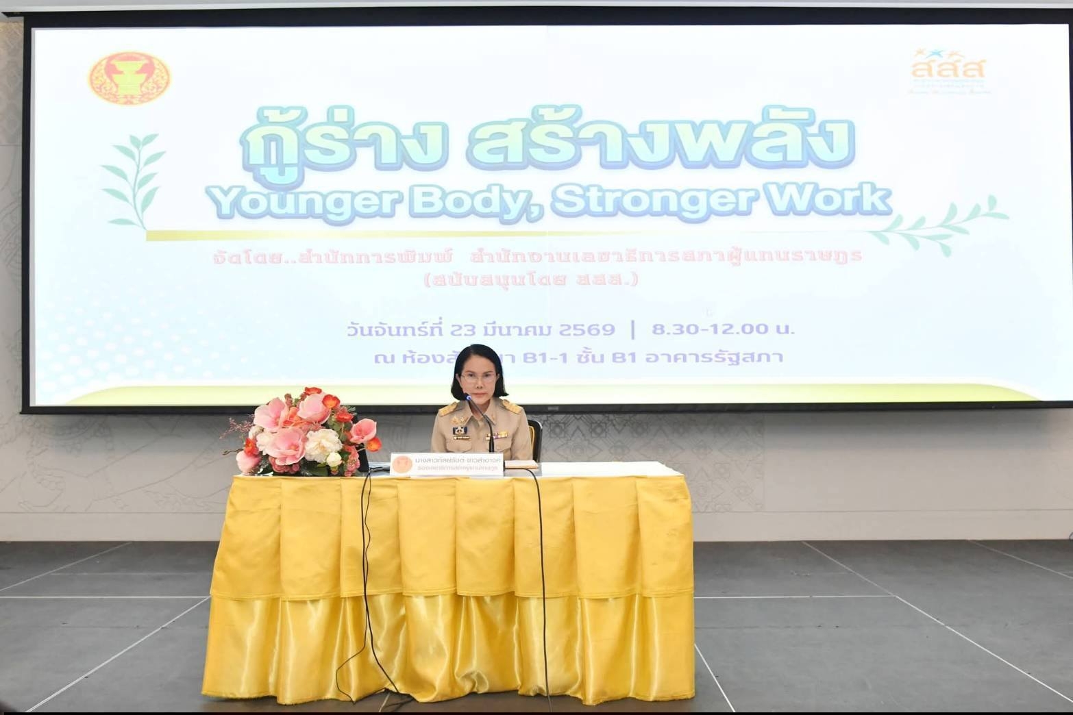 23 มีนาคม 2569 รัฐสภาเปิดตัวโครงการ “กู้ร่าง สร้างพลัง Younger Body, Stronger Work” ดึงผู้เชี่ยวชาญแนะเคล็ดลับเวชศาสตร์ชะลอวัย มุ่งสู่เป้าหมายองค์กรแห่งความสุข (Happy Workplace) อาคารรัฐสภา สำนักงานเลขาธิการสภาผู้แทนราษฎร เดินหน้าขับเคลื่อนนโยบายพัฒนาคุณภาพชีวิตบุคลากร จัดโครงการส่งเสริมสุขภาพเชิงรุกภายใต้แนวคิด “กู้ร่าง สร้างพลัง Younger Body, Stronger Work” มุ่งปลูกฝังแนวคิดเวชศาสตร์ชะลอวัย เพื่อลดความเสี่ยงโรค NCDs และเสริมสร้างศักยภาพการปฏิบัติงานอย่างยั่งยืน