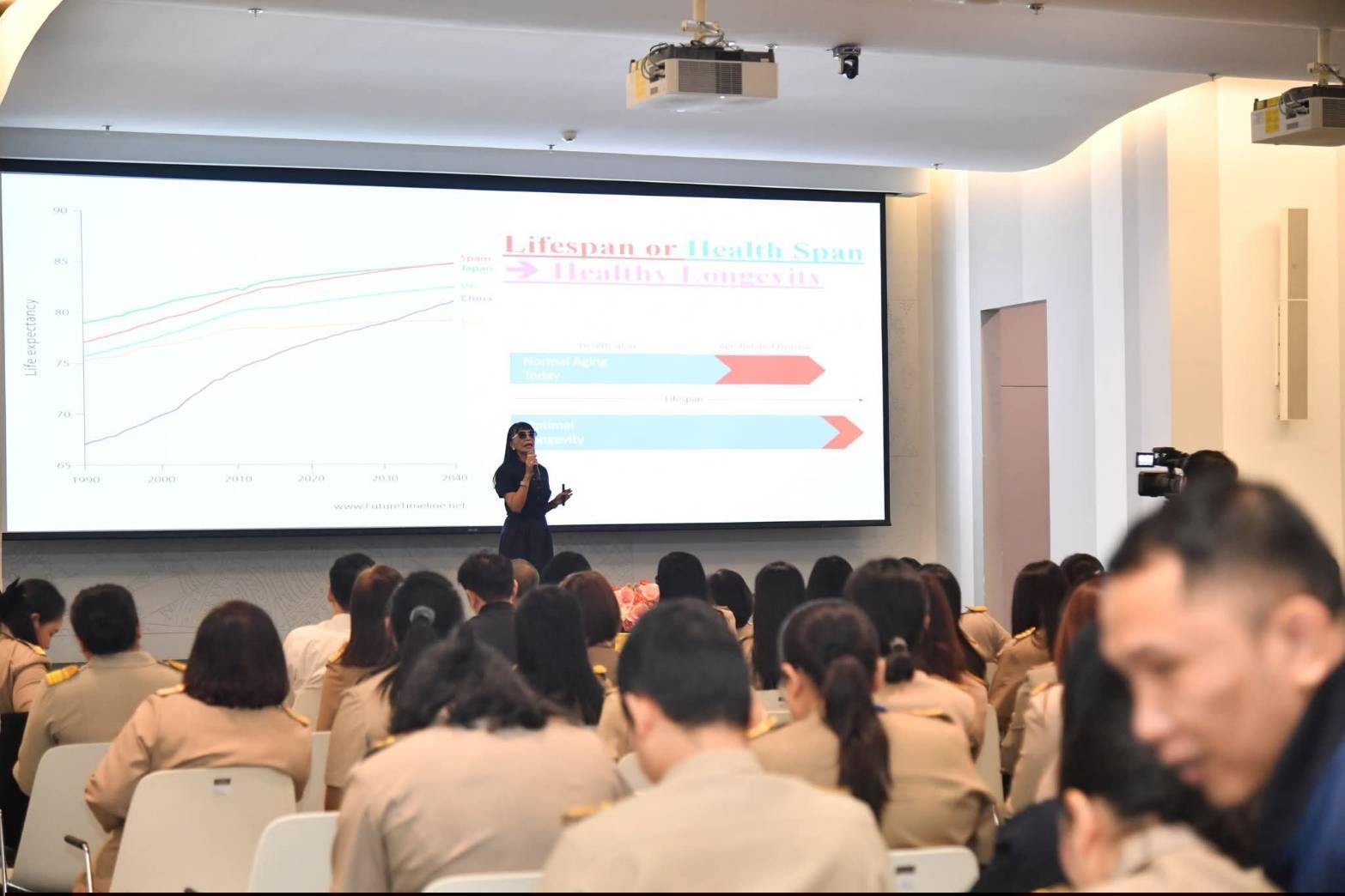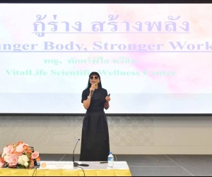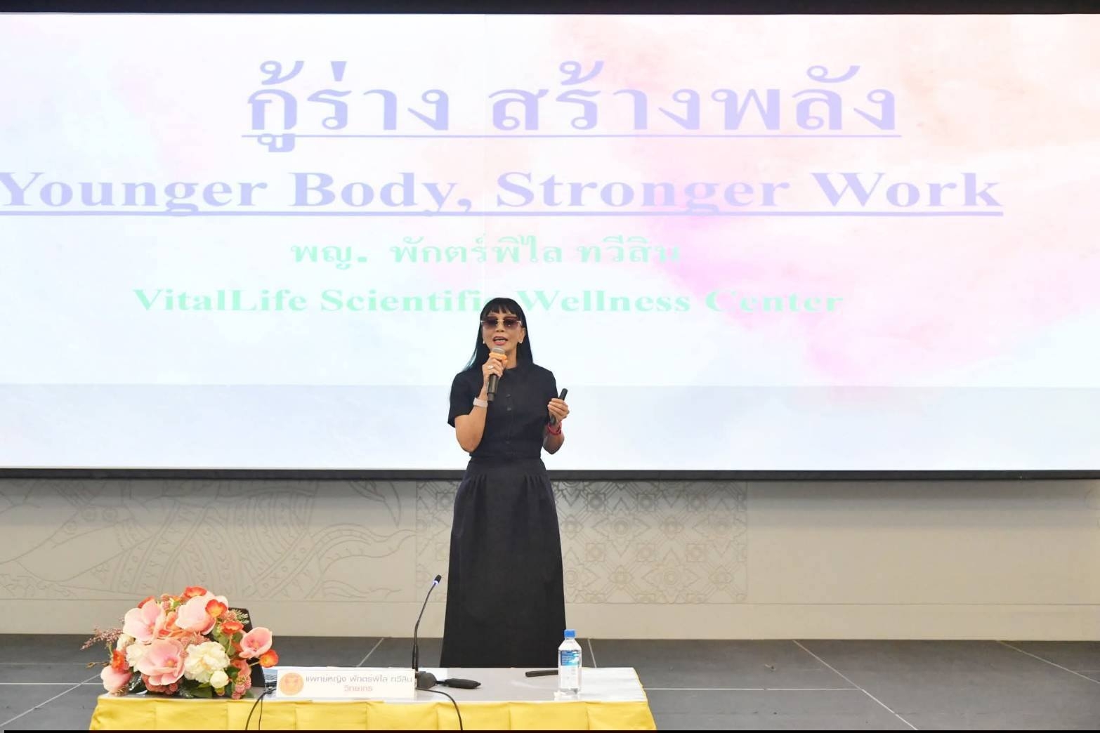 เจาะลึกศาสตร์ชะลอวัยและการดูแลสุขภาพเชิงป้องกัน: ภายในงานได้รับเกียรติจาก แพทย์หญิง พักตร์พิไล ทวีสิน ผู้เชี่ยวชาญด้านเวชศาสตร์ชะลอวัยและการดูแลสุขภาพแบบองค์รวม เป็นวิทยากรถ่ายทอดองค์ความรู้ระดับสากล โดยเน้นย้ำถึงการปรับเปลี่ยนพฤติกรรมในชีวิตประจำวันเพื่อชะลอความเสื่อมของร่างกาย